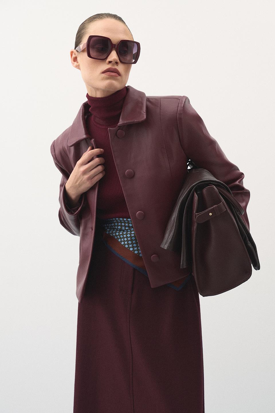 Klasik formu modern bir zarafetle buluşturan Kısa Deri Ceket, şehirli siluetlere güçlü bir dokunuş katıyor. Yumuşak dokulu suni deri yüzeyi, mat parlaklığıyla zamansız bir duruş yaratırken; kruvaze yakası ve kaplamalı düğmeleriyle sade ama etkileyici bir görünüm sunar. Kısa kesimi sayesinde yüksek bel pantolonlar, etekler ya da elbiselerle zahmetsizce kombinlenir. Gün boyu konforlu formu, sezonun sofistike renk tonuyla birleşerek güçlü ve feminen bir stil tamamlar.