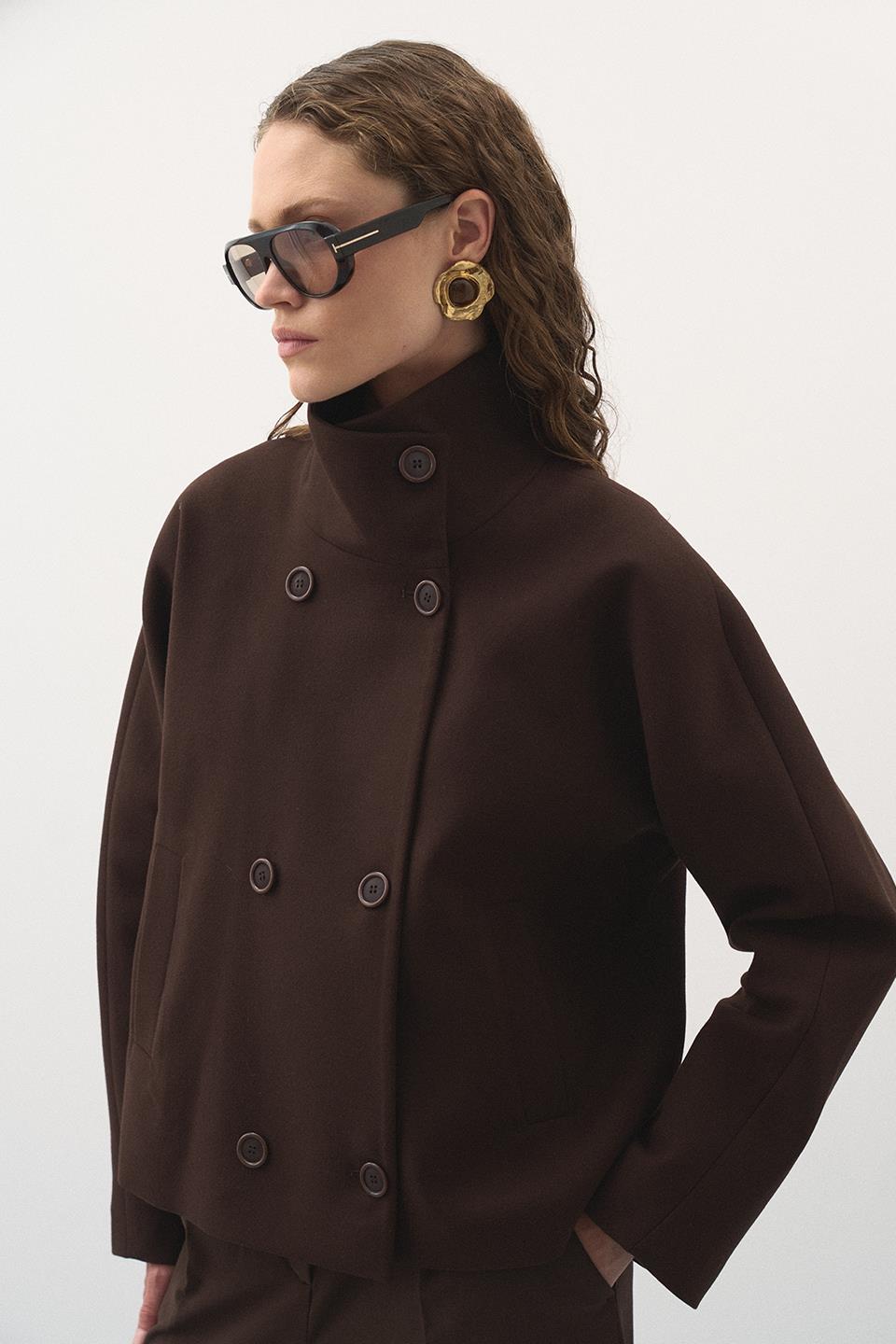 Kısa kesimi, yüksek bel etek veya pantolonlarla mükemmel bir orantı yakalayarak görünümü zahmetsizce sofistike hale getirir. Yoğun şehir temposunda hem iş hem hafta sonu kombinlerine uyum sağlayan bu tasarım, sade çizgileriyle zamansız bir karakter taşır. Yumuşak kaşe dokusu, tenle temas eden sıcaklık hissiyle fonksiyonel bir konfor sunarken, duruşundaki güçle dikkat çeker. Kısacası bu kaban, gardırobun klasik parçası değil; sezonsuz stilin simgesi.