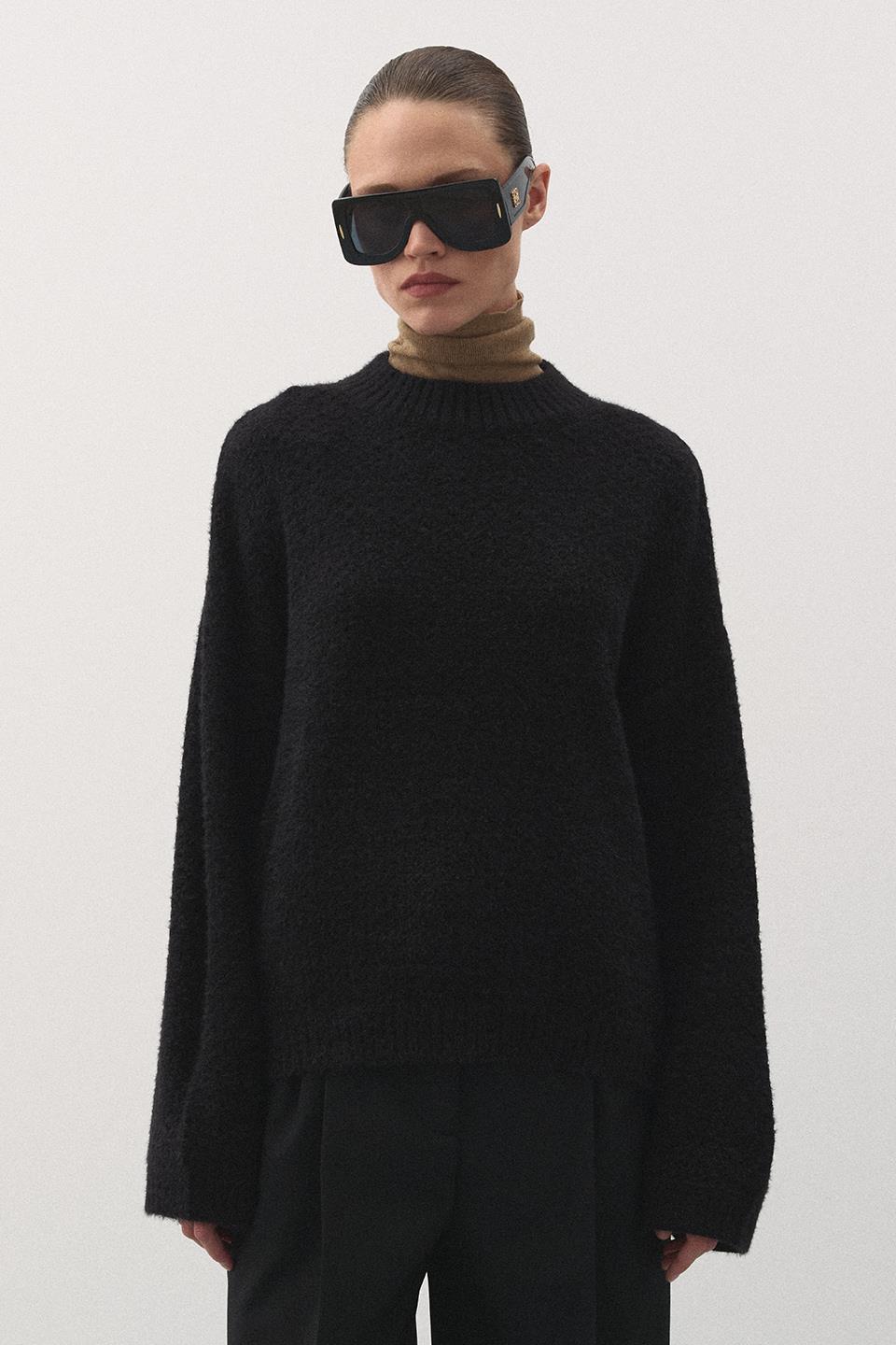 Oversize Örgü Kazak Siyah