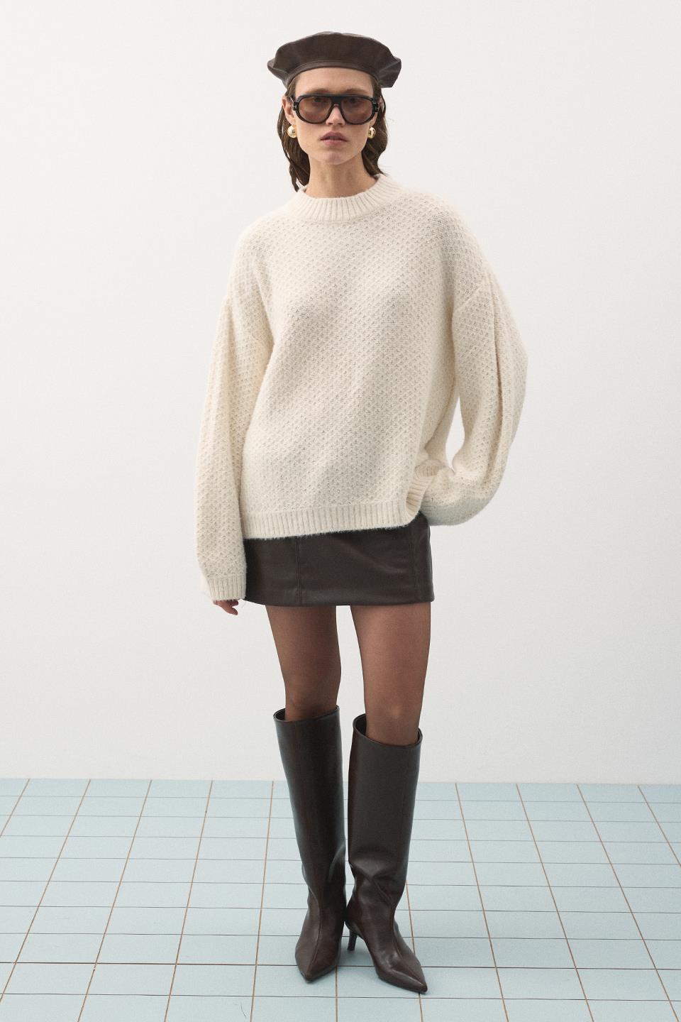 Oversize Örgü Kazak Vanilla