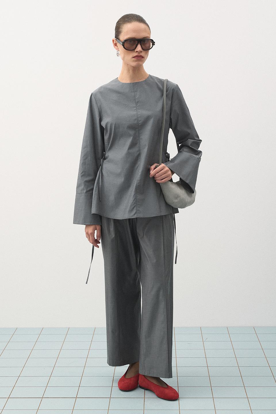 Pileli Pantolon Gri