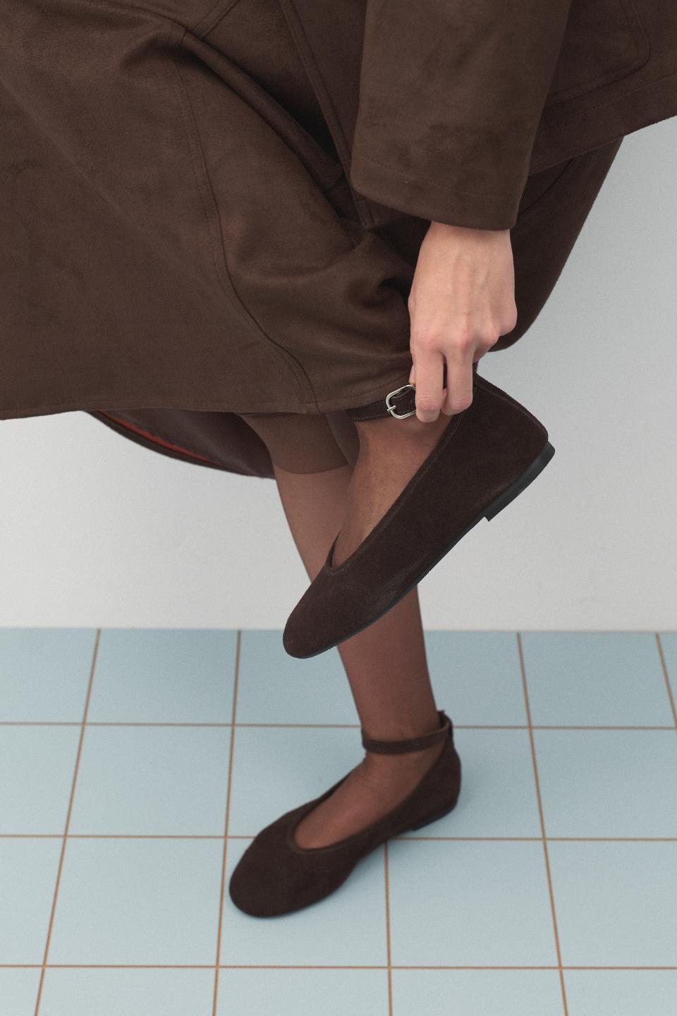 Koleksiyonun zarif yorumlarından biri olan bu yeni babet modeli, minimal tasarımıyla modern sadeliği yansıtıyor. Gerçek süet dokusu ve bilekten ayarlanabilir tokalı bant detayıyla hem şık hem de konforlu bir alternatif sunuyor. İnce tabanı ve yuvarlak burun formu sayesinde gün boyu rahatlık sağlarken, nötr rengi sayesinde gardırobunuzun joker parçalarından biri olmaya aday. Hem şehir hayatına hem de özel anlara uyum sağlayacak zarif bir tamamlayıcı.